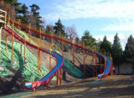 ↓このように長~~~い滑り台もあります!!子どもと一緒に木造の階段(長く高い階段)を一段ずつ上るのも楽しいです!高所恐怖症の私でも、楽しんでいます。